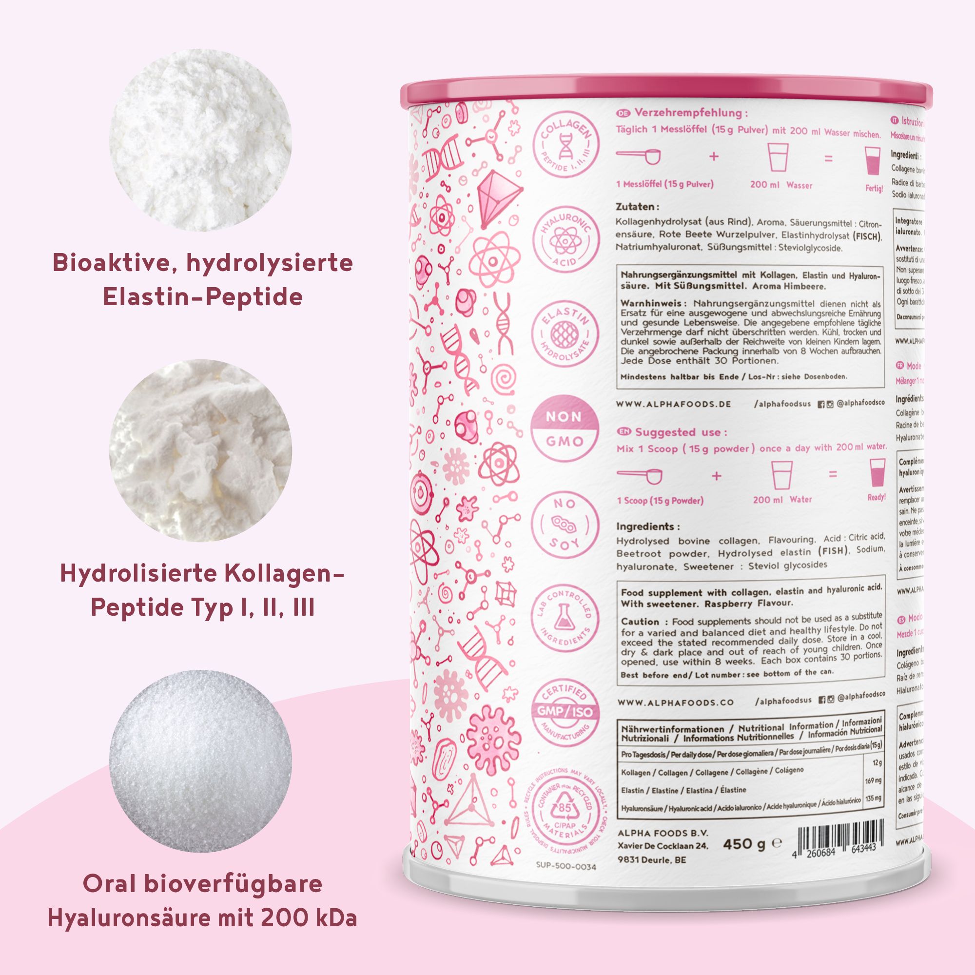 ALPHA FOODS Kollagen Elastin+ Hyaluronsäure Himbeere