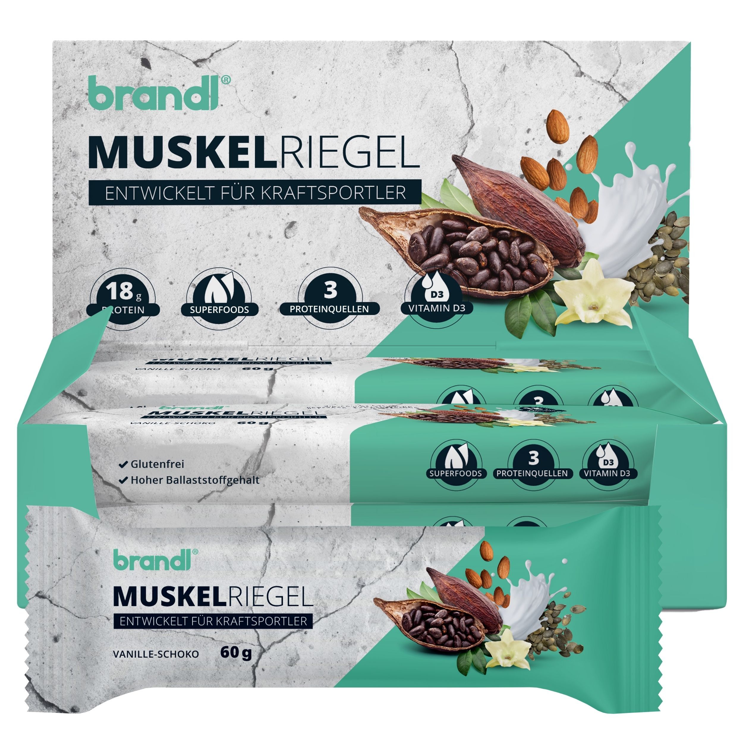 brandl® Eiweiß-Riegel mit 18g Eiweiß aus 3 Quellen