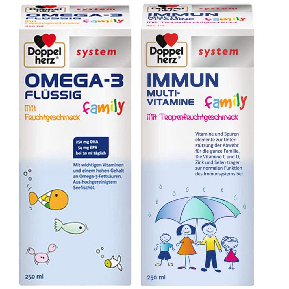 Doppelherz® system OMEGA-3 flüssig family + system IMMUN Multivitamine family
