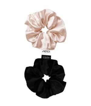 In einem Pack sind zwei GLOV Scrunchies enthalten, eine in der Farbe Champagne und eine in der Farbe Black.