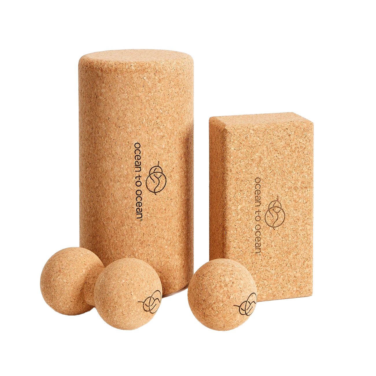 Ocean to Ocean Kork-Set bestehend aus Yogablock, Faszienrolle, Peanut-Faszienball und Faszienball