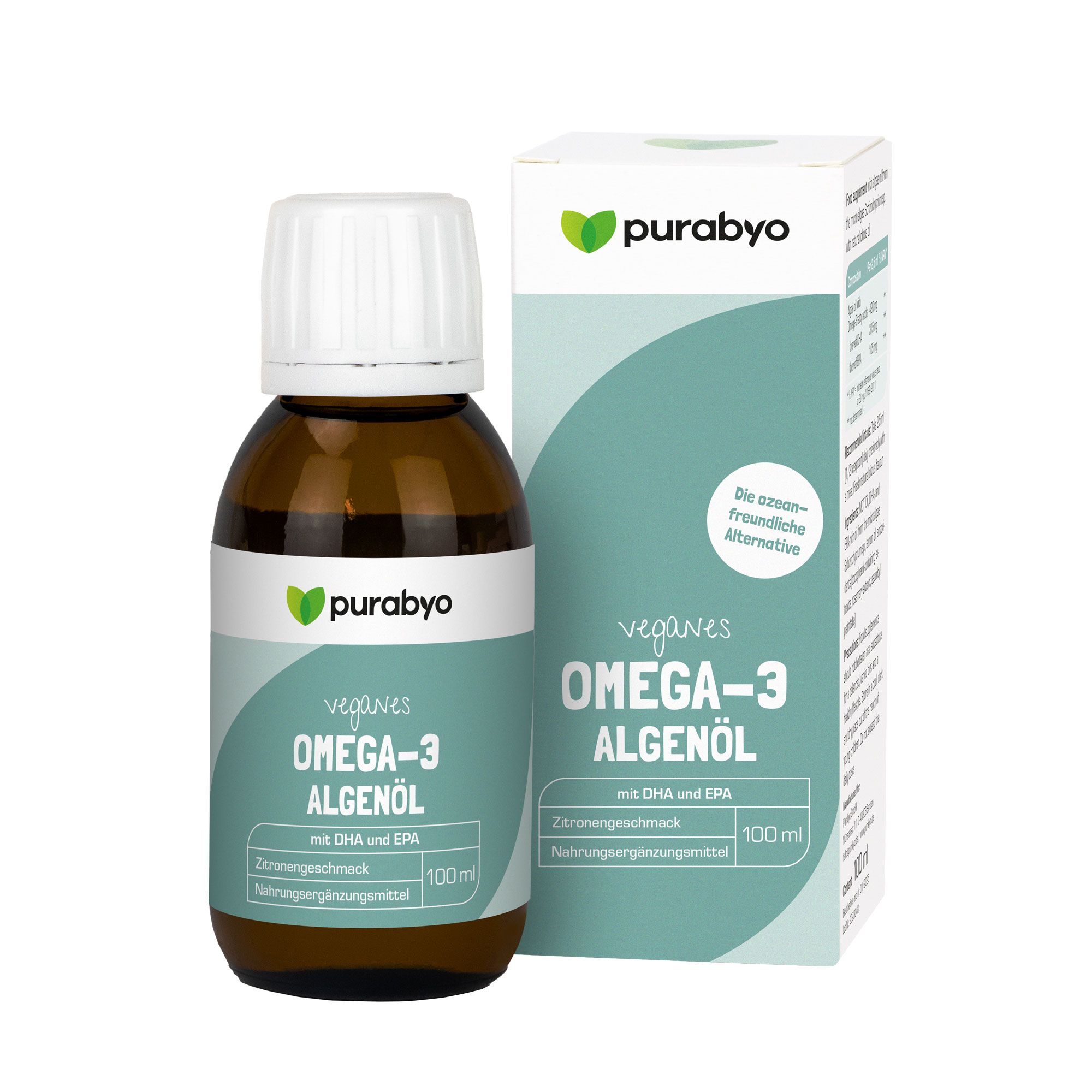 PURABYO Omega-3 Algenöl flüssig | 420 mg Omega -3 | natürliches Zitronen-Aroma