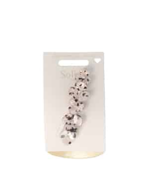 | Pflegehinweise | Zur Reinigung mit einem weichen, trockenen Tuch abreiben. Vermeiden Sie den Kontakt mit aggressiven Chemikalien, Parfüms und Haarsprays, um den Glanz der Strasssteine und die Oberfläche des Metalls zu erhalten. |